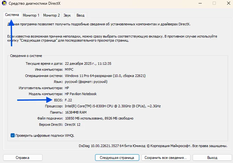 Системные и выход: