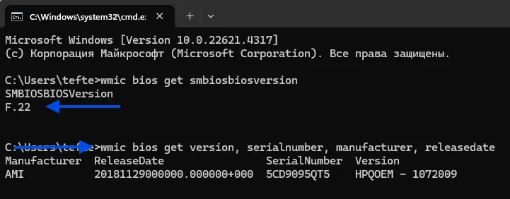 Пример вывода команды: